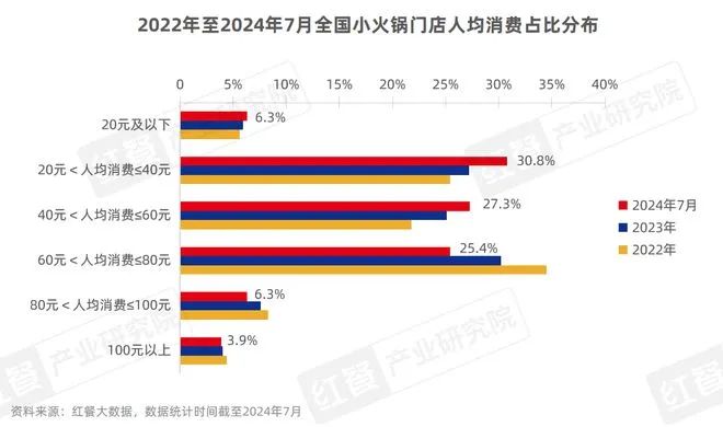 但对于大多数消费者来说,这些大品牌的客单价还是高了,2023年火锅消费主流客单价主要集中在60-80元之间。