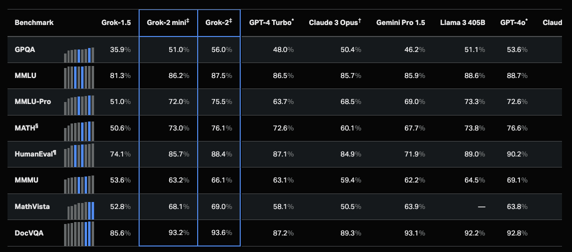当地时间8月13日,马斯克旗下xAI正式发布语言模型Grok-2早期预览版。据介绍,该系列模型具有聊天、编码和推理等功能,包括Grok-2和Grok-2 mini两个版本,目前正在X平台上进行测试,并将于本月晚些时候通过企业API提供上述模型。