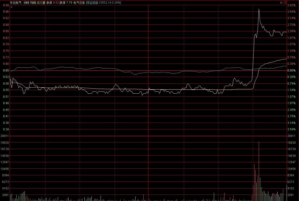 东北电气7日收盘价为8.85元/股,上涨2.31%。H股每股2.650港元,下跌0.38%。A股异动明显。