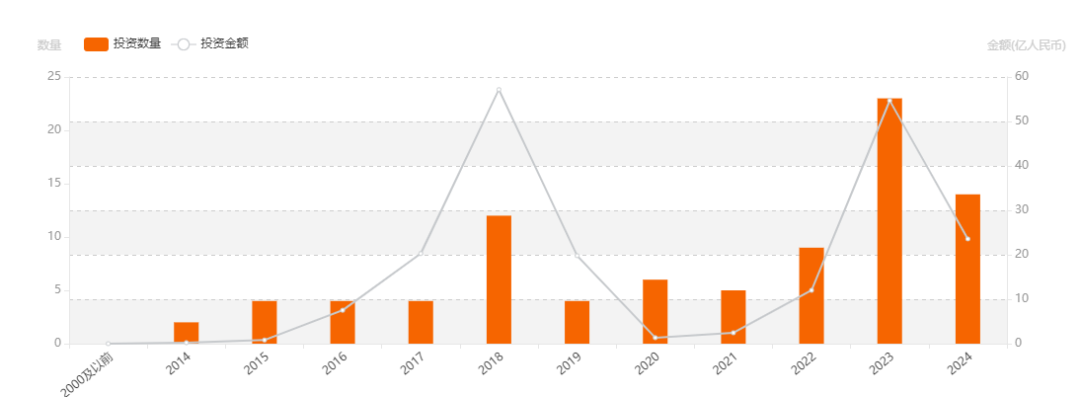 从融资表现来看,据“IT桔子”数据,2023年人形机器人领域融资事件有23起,总金额达到54.71亿元,是过去十年以来的巅峰。而截至当前,2024年人形机器人领域已经有14起融资事件,总金额接近24亿元。