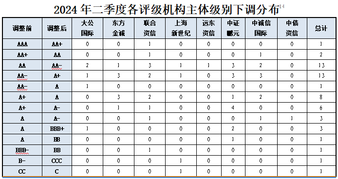 《通报》显示,二季度,评级机构共进行负面调整59家,包括级别下调54家,展望下调5家。