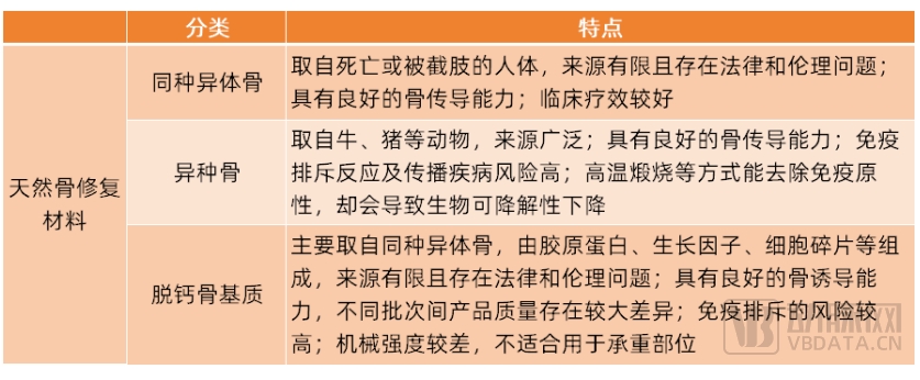 相较于自体骨,同种异体骨的来源更为广泛,并保留了骨骼的自然结构、形状和强度,能够促进新骨生长。基于这些优势,同种异体骨已成为自体骨的有效替代品,2018年其在天然骨修复材料中的临床应用比例超90%。