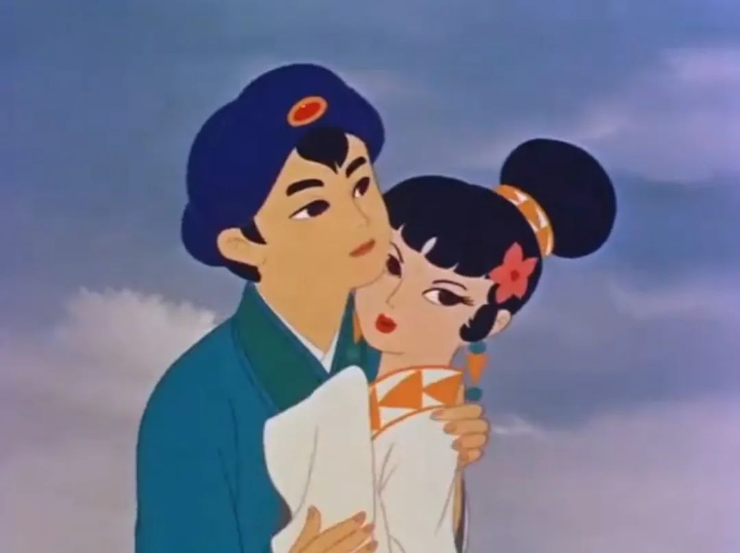 比如,在1958年东映出品的日本第一部彩色长篇动画电影《白蛇传》里,许仙与白蛇的叙事就发生了极大变化:许仙为寻找白蛇而丧命,白蛇为救活许仙放弃法术成为人,许仙下海救白蛇,二人互相救赎,这段双向奔赴的故事结局最终落脚在成为人的白娘子、许仙和法海3人和好。即使现在看来电影很多设定和改动都属“魔改”,但是从叙事逻辑上来说倒也合情合理。