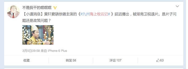 近日,坊间开始流传原定暑期档登陆湖南卫视的玄幻大剧《海上牧云记》被湖南卫视退片的消息。这部云集了黄轩、窦骁、周一围、徐璐、文咏珊、张佳宁等实力派和偶像派主演的年度大作,从开拍之初就备受关注,而且之前曝光的预告片也被很多从业者认为是可以成为年度玄幻的超级大剧。