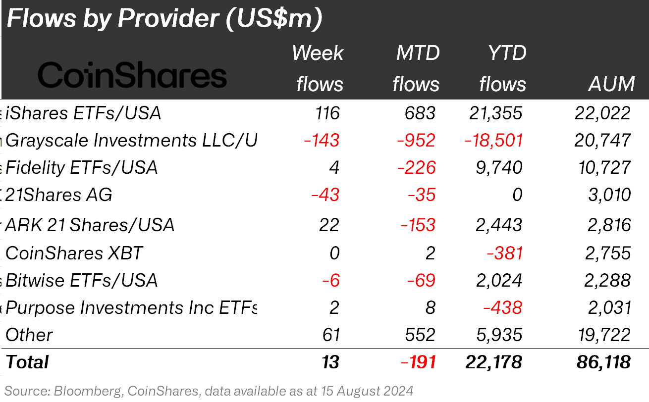 8月15日,加密资产服务商CoinShares研究主管James Butterfill在社交平台X上披露,贝莱德近期超越灰度,成为管理总资产最大的数字资产基金管理公司。