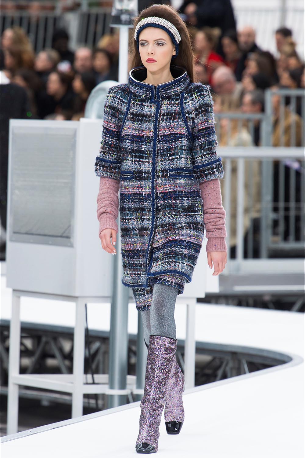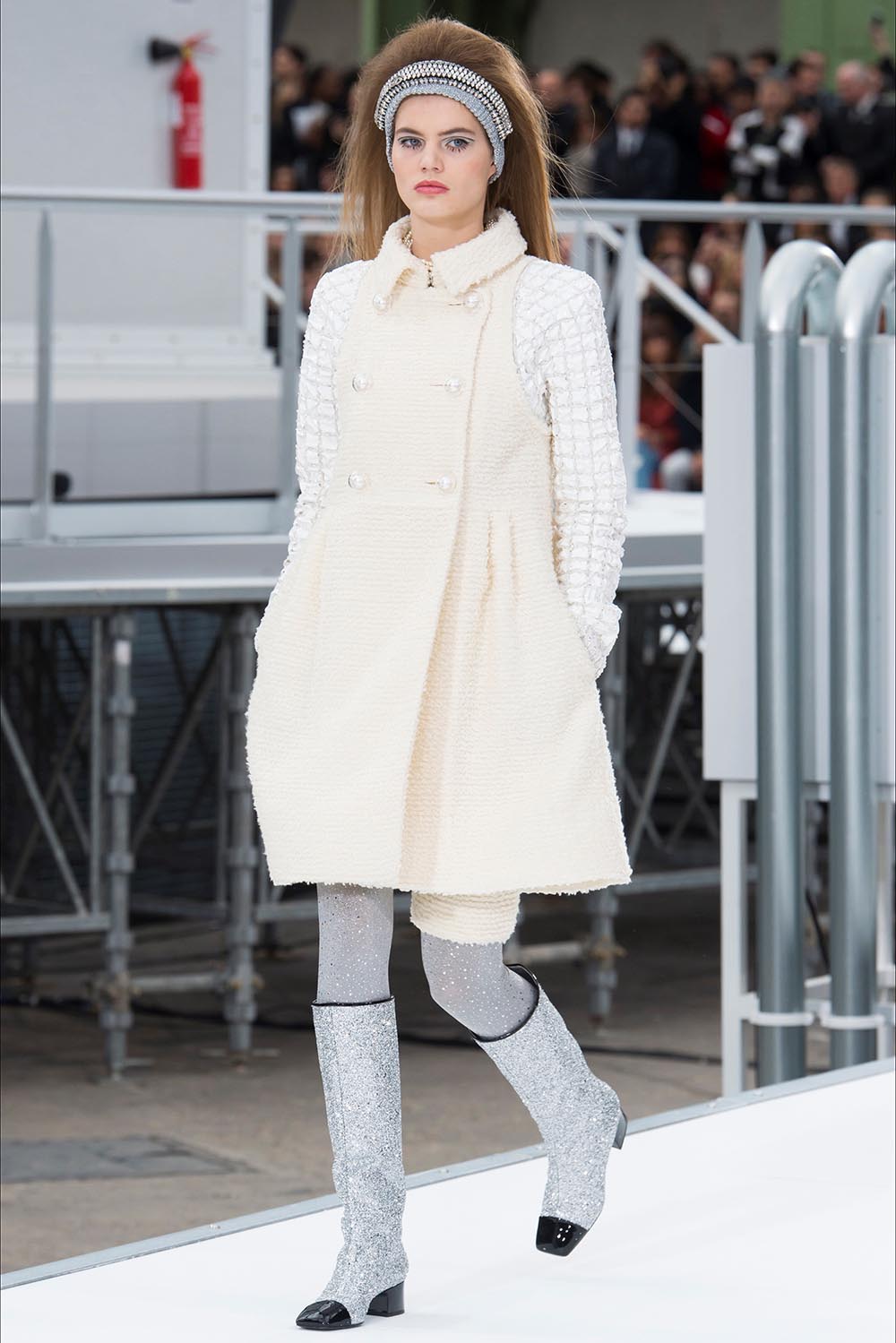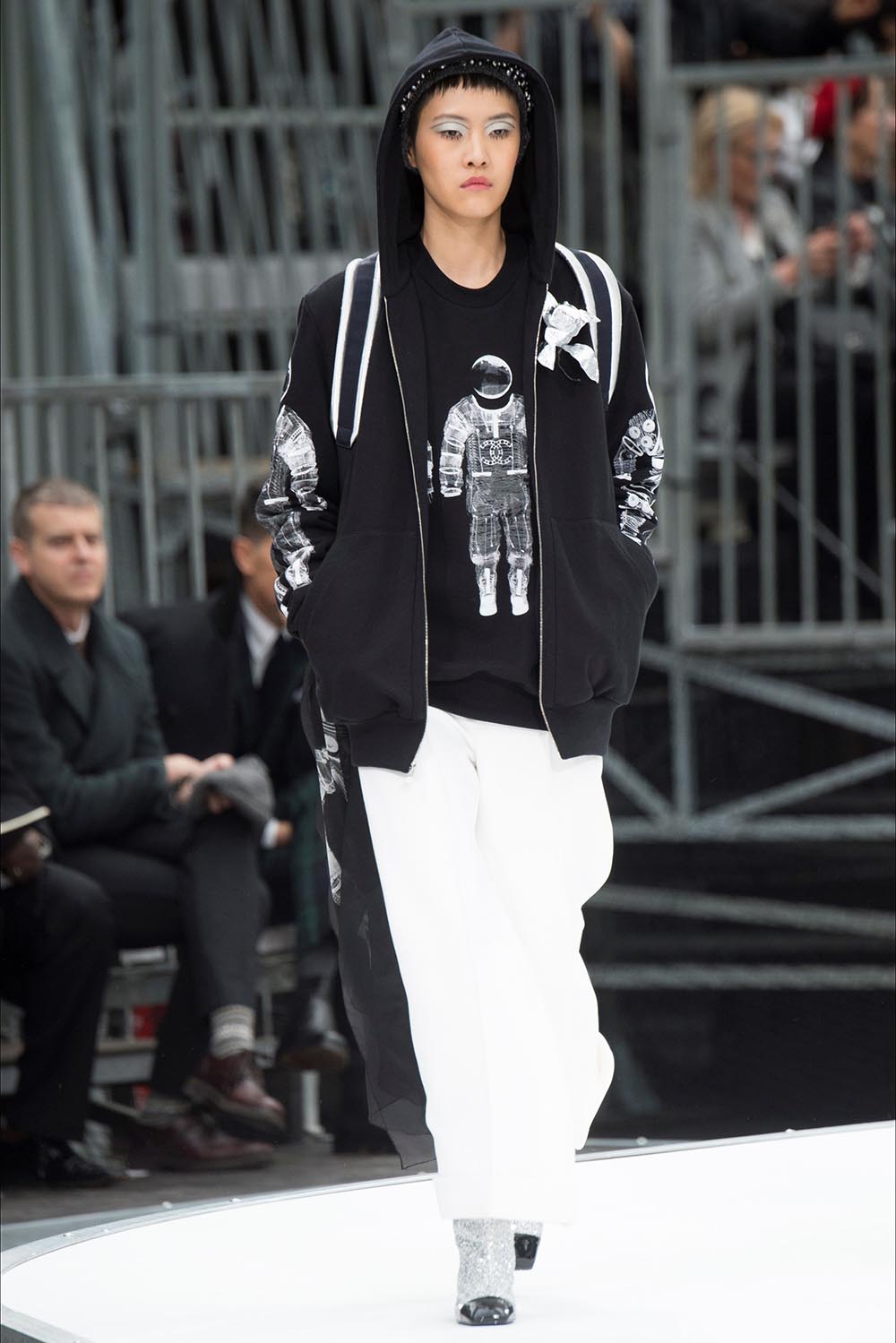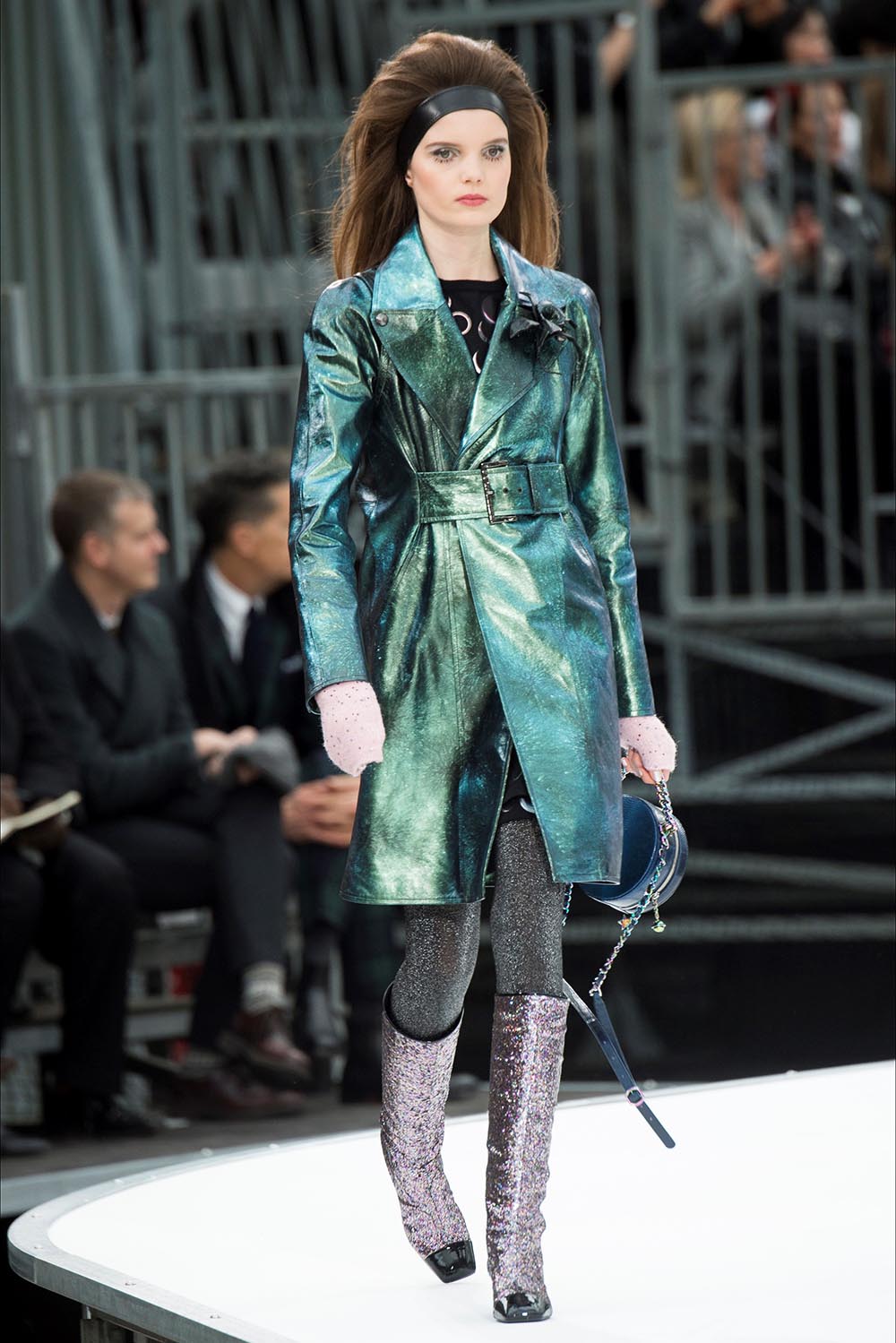 在这一季,Chanel向这股堙灭已久的太空风潮掷去枚高能炮弹——2017秋冬高级成衣系列的发布秀场被布置成了香奈儿5号火箭发射中心,位于中心的35米高的火箭直指大皇宫玻璃穹顶。