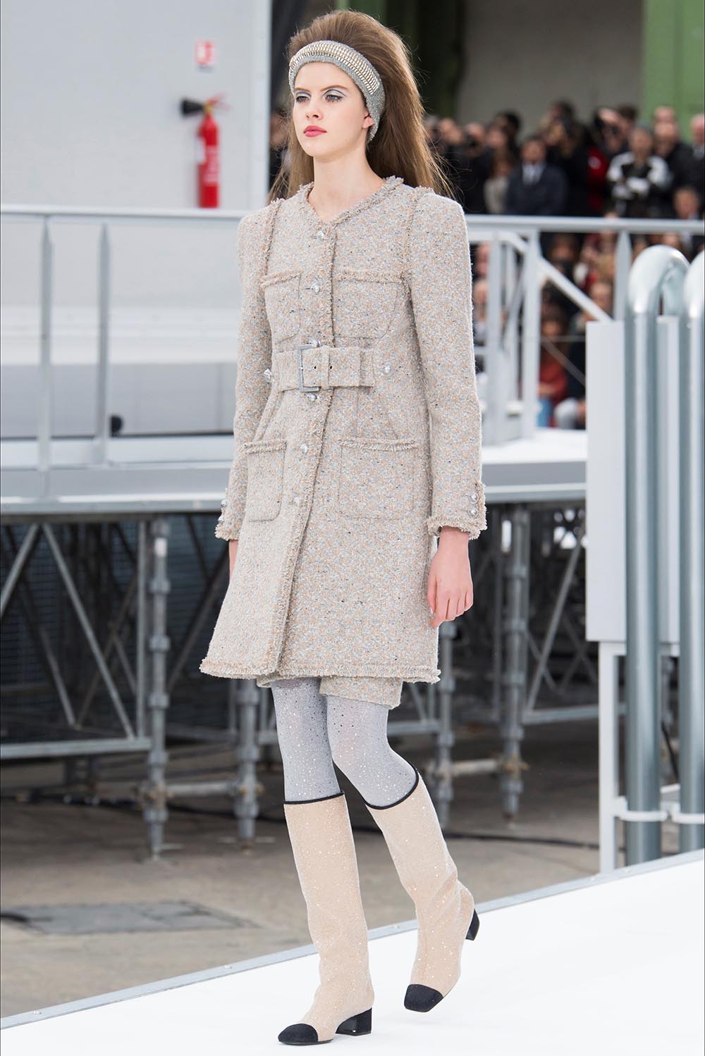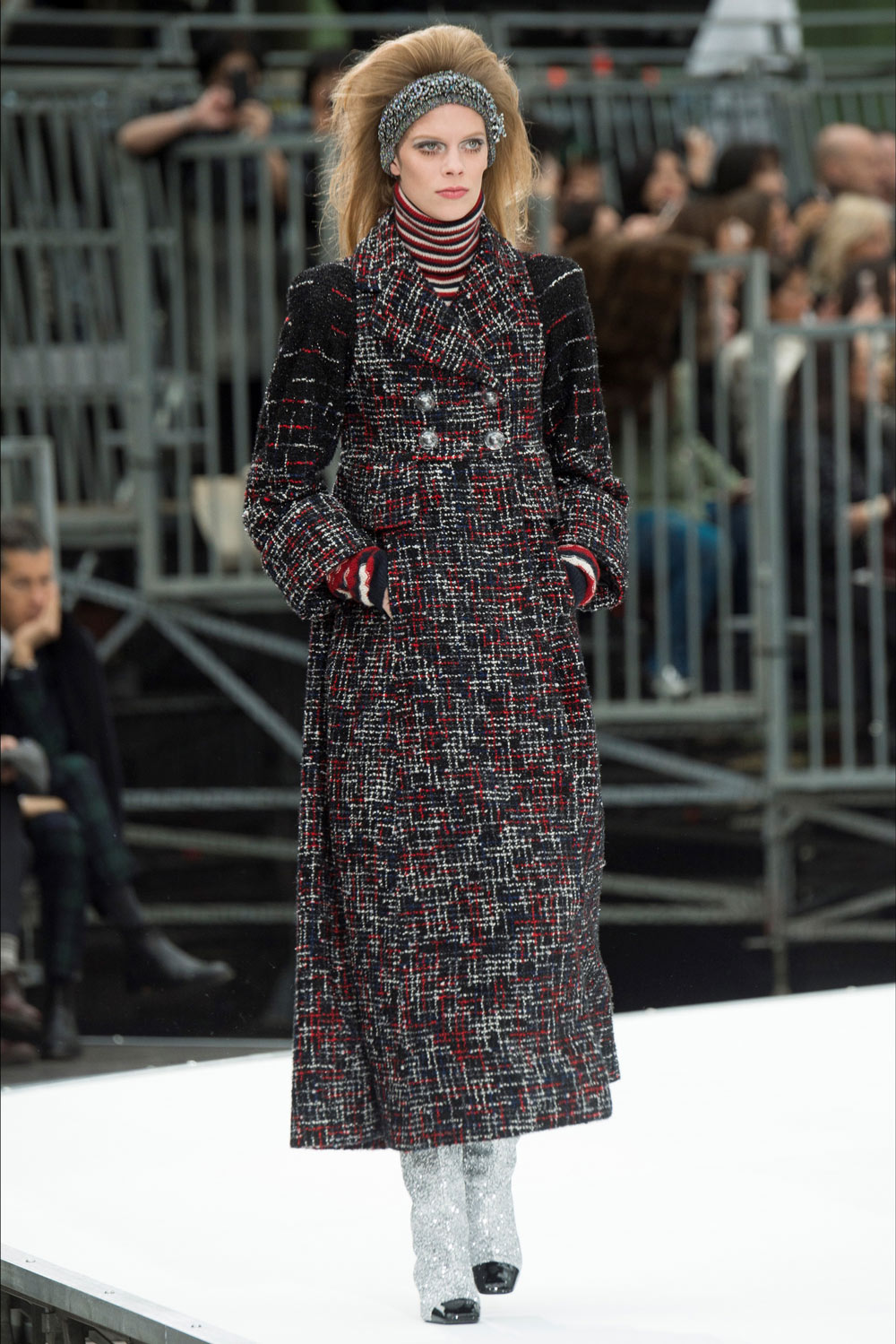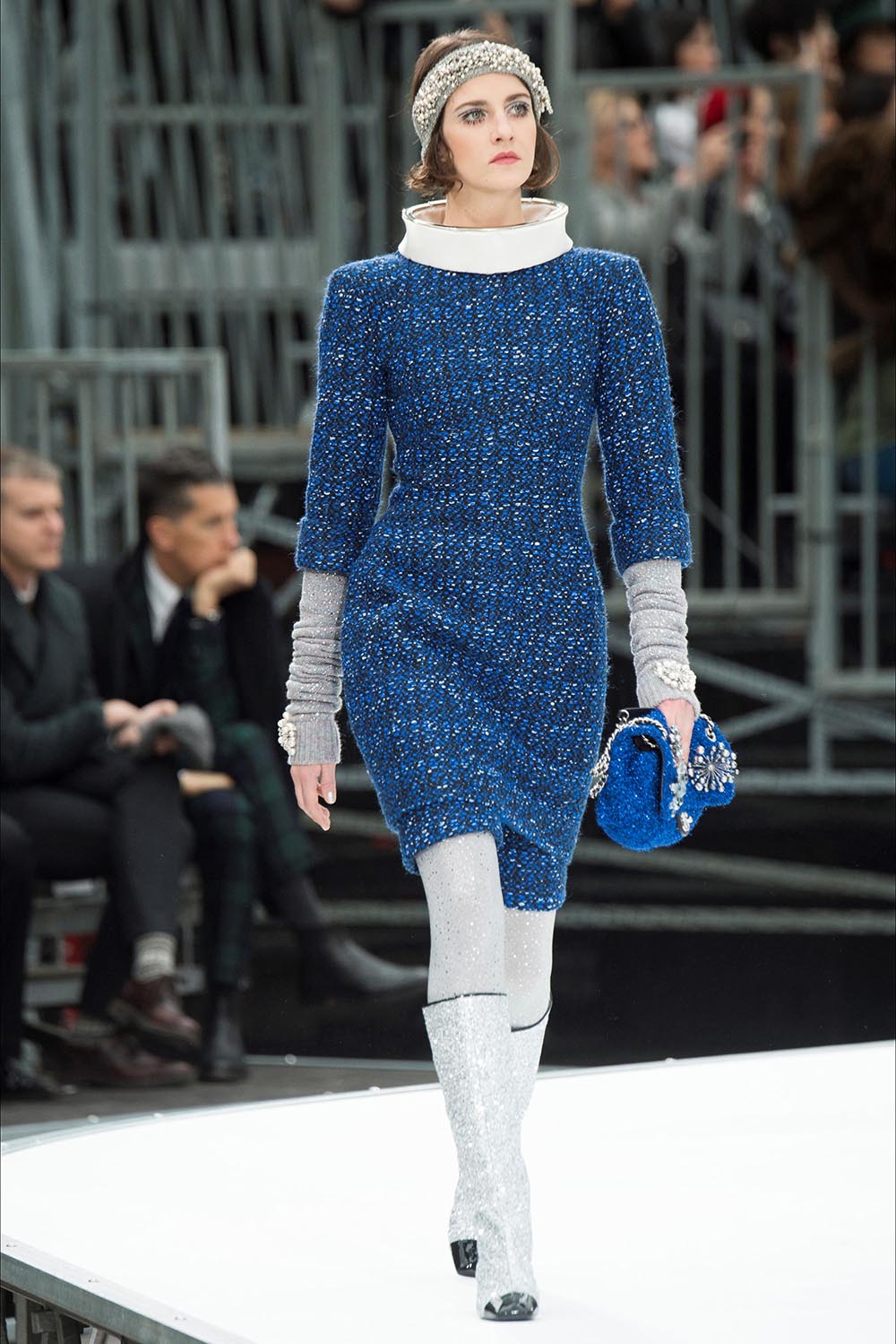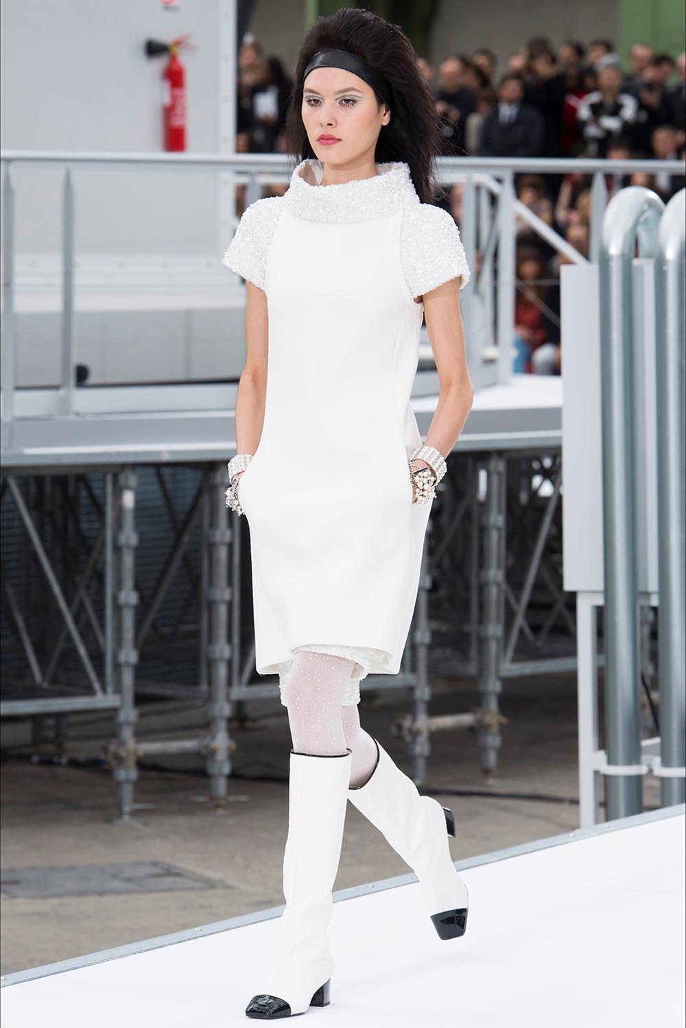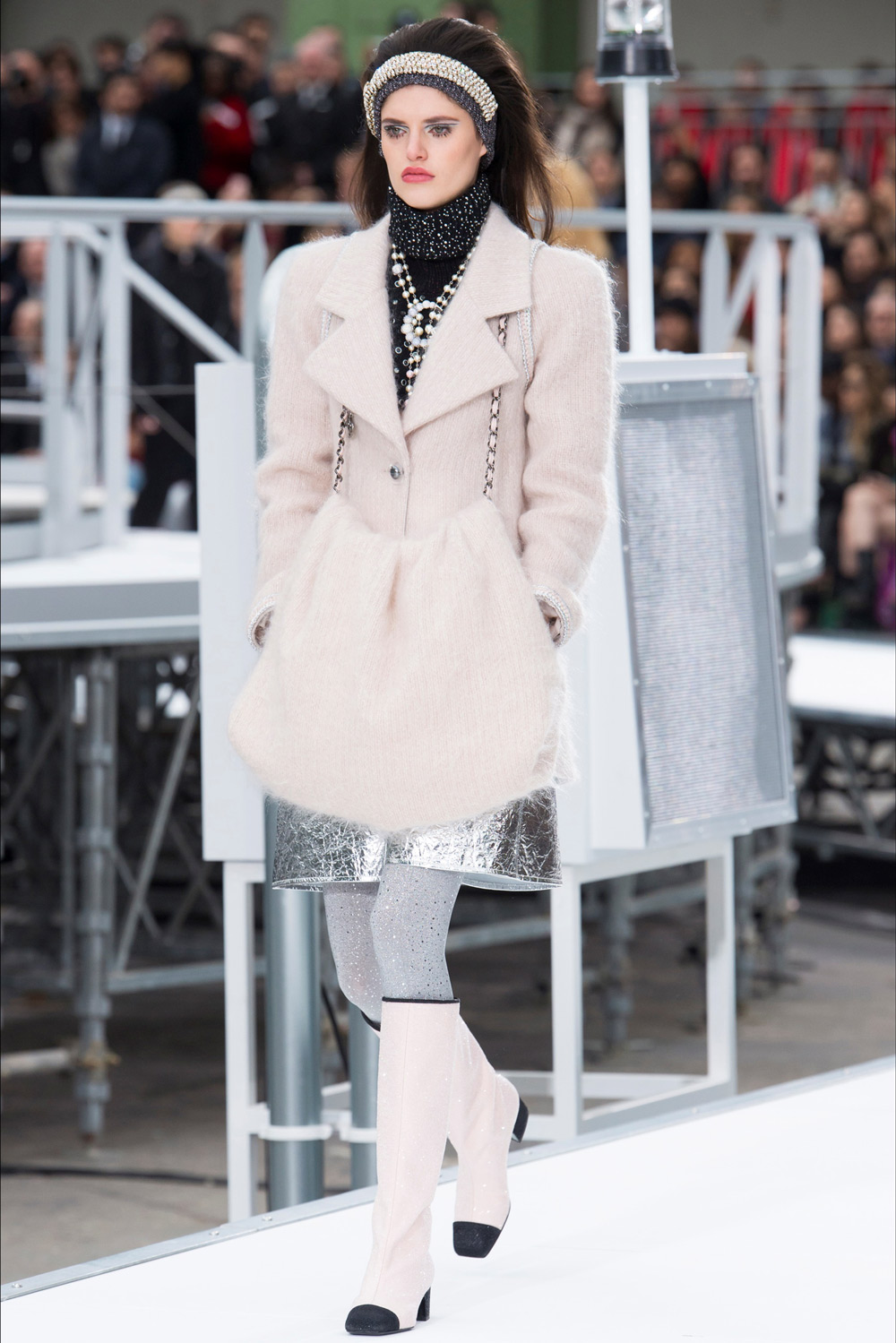 在这一季,Chanel向这股堙灭已久的太空风潮掷去枚高能炮弹——2017秋冬高级成衣系列的发布秀场被布置成了香奈儿5号火箭发射中心,位于中心的35米高的火箭直指大皇宫玻璃穹顶。
