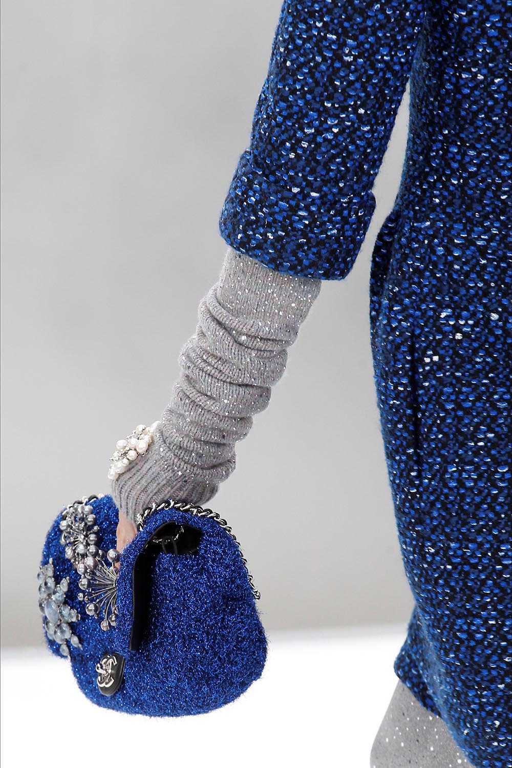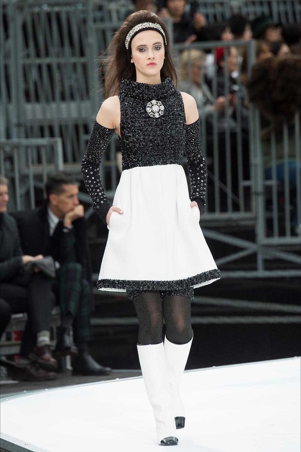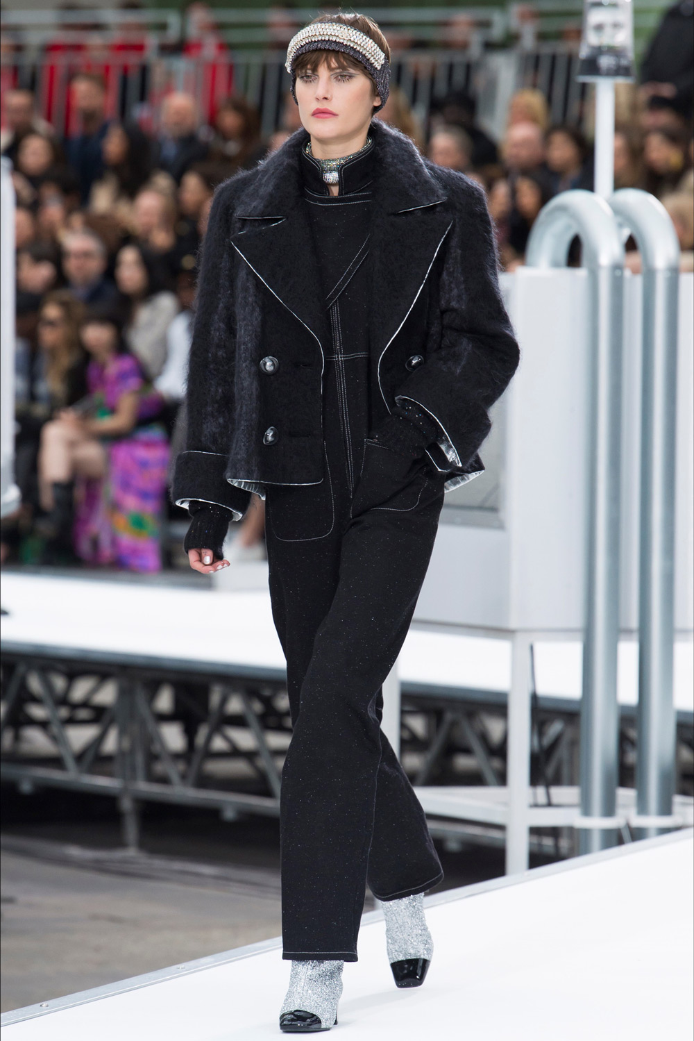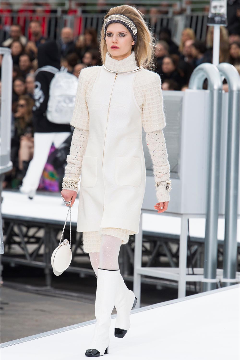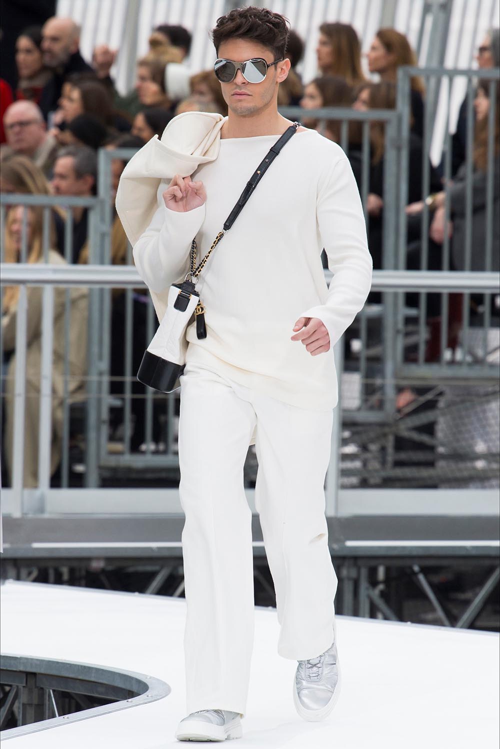 模特头戴绣有水晶和人造珍珠的发带,就如同银河。在配饰方面,2017春夏首发的Gabrielle手袋、饰有徽章图案的BOY CHANEL,以及闪光材质的超大号手袋接连登场。