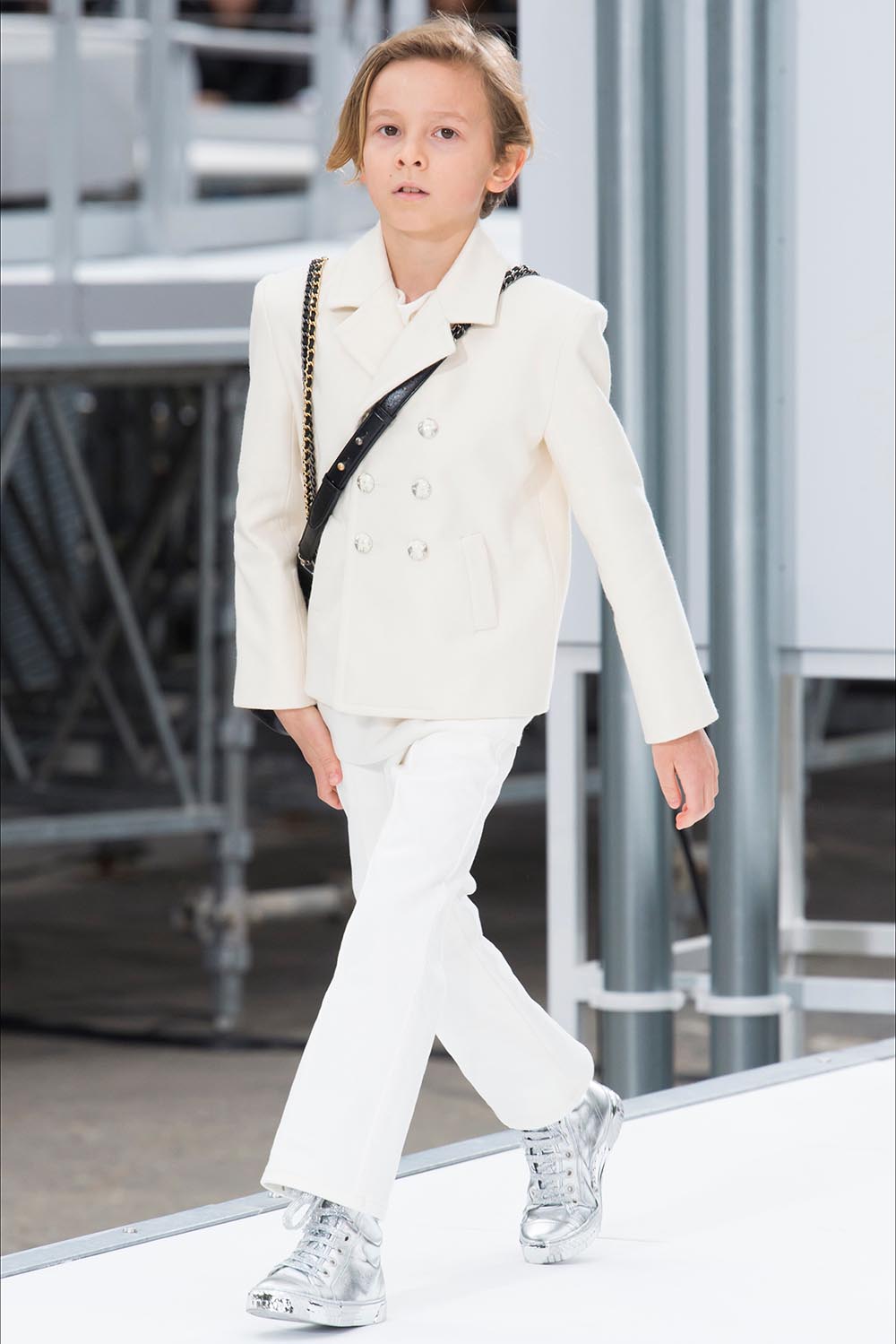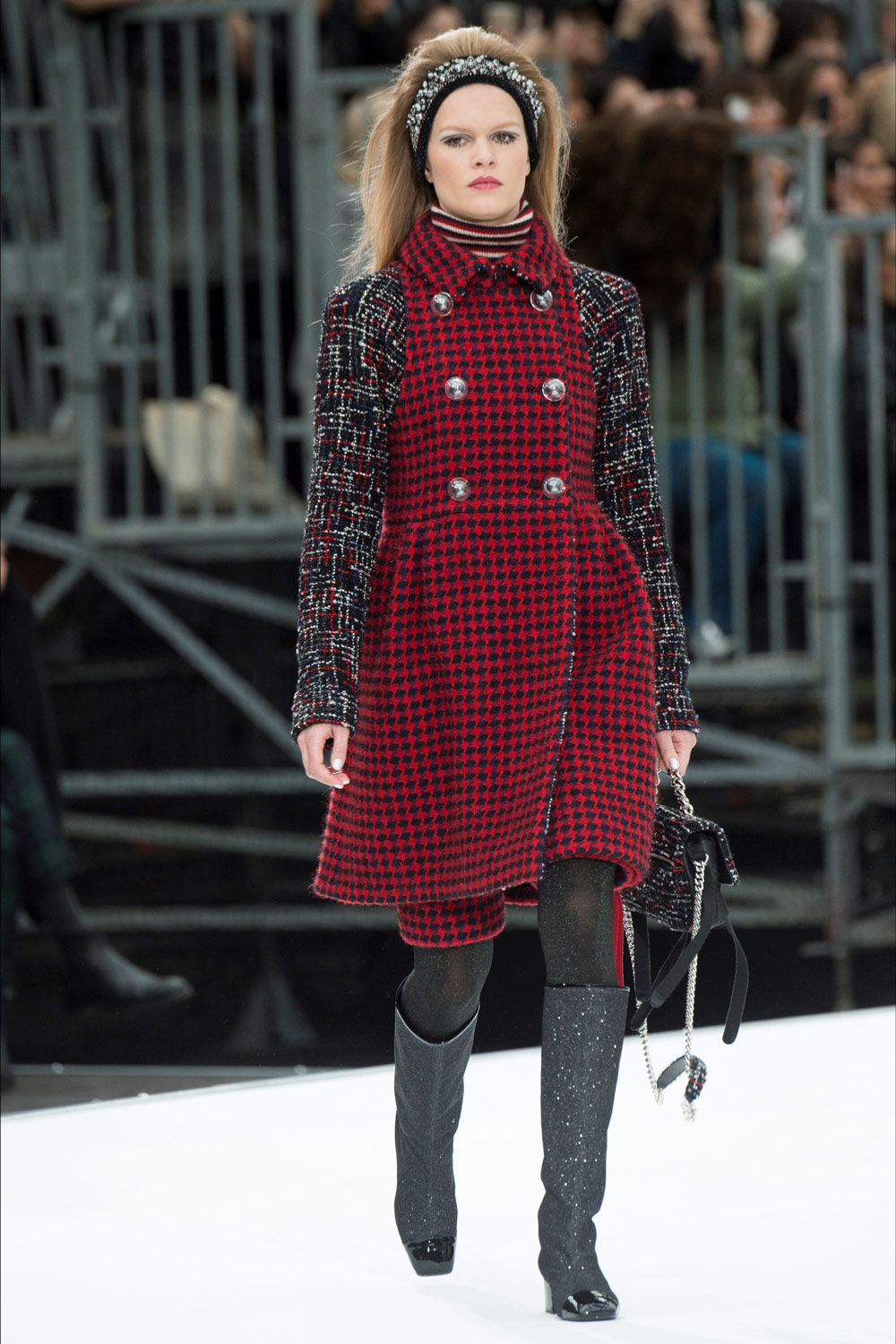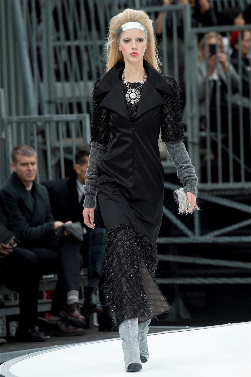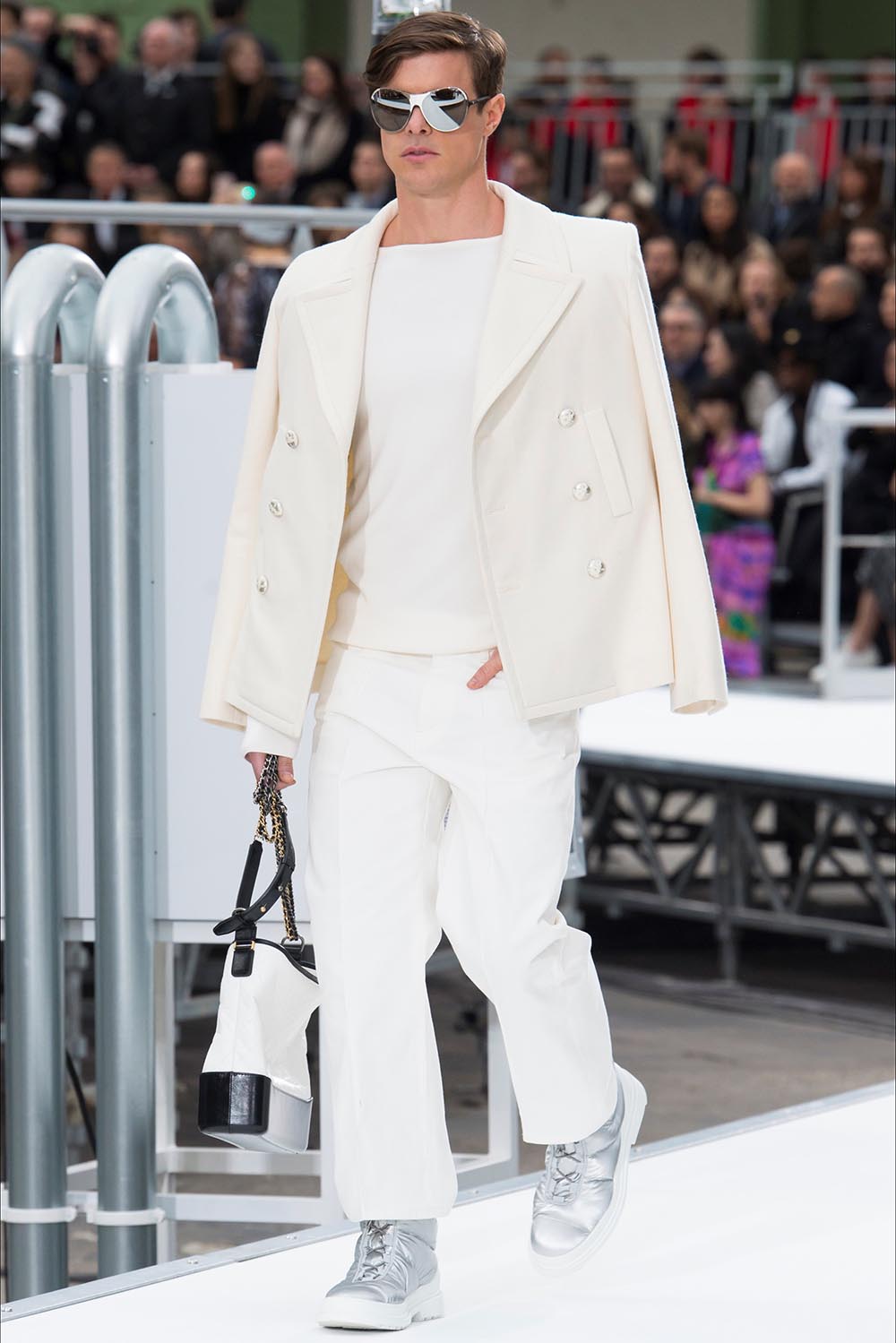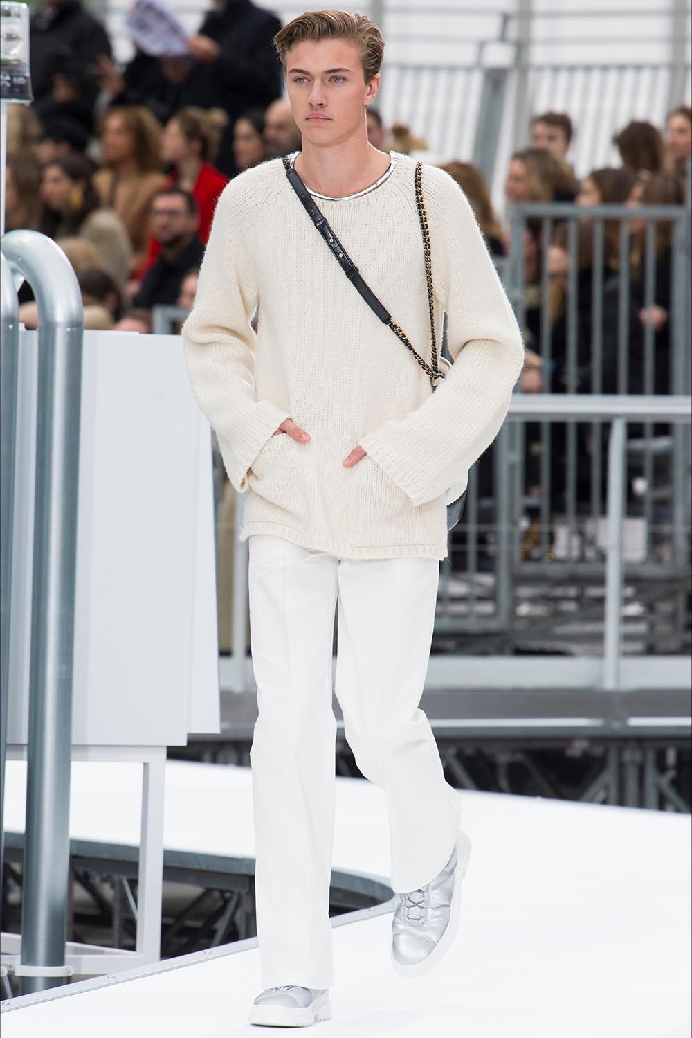 模特头戴绣有水晶和人造珍珠的发带,就如同银河。在配饰方面,2017春夏首发的Gabrielle手袋、饰有徽章图案的BOY CHANEL,以及闪光材质的超大号手袋接连登场。