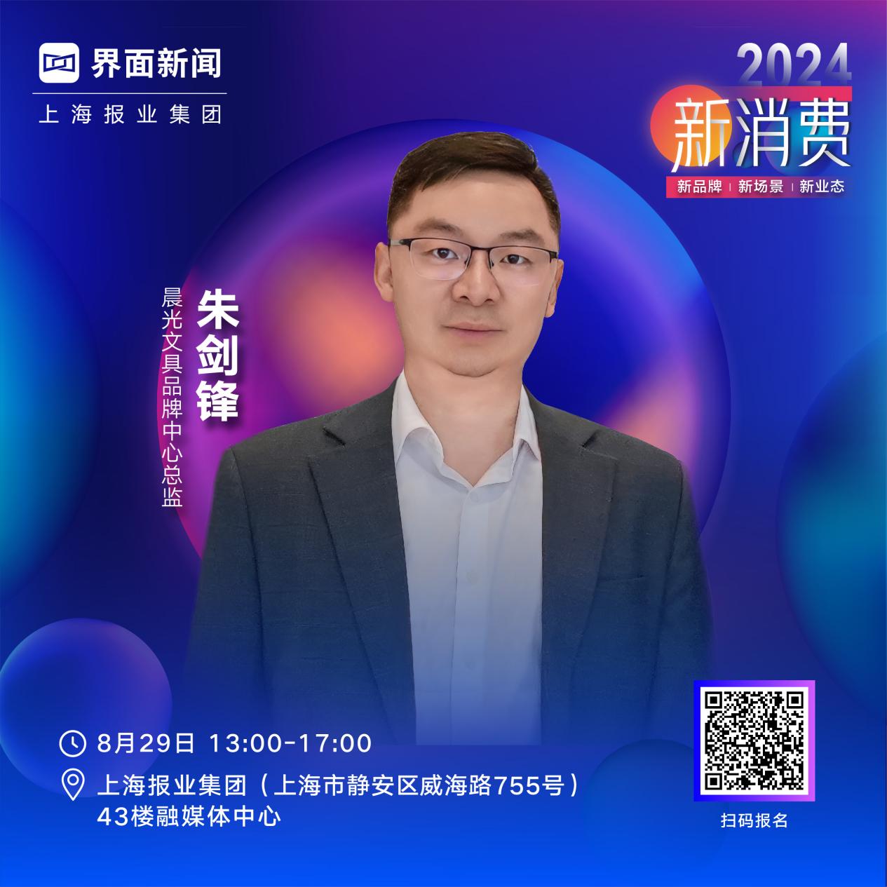 由上海报业集团|界面新闻主办的2024【新消费盛典】将于8月29日星期四在上海报业大厦43楼融媒体中心(上海市静安区威海路755号)举行。晨光文具品牌中心总监朱剑锋确认出席2024【新消费盛典】。