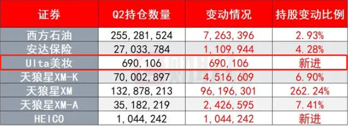 值得一提的是,在一番操作之后,伯克希尔的主要持仓顺序并没有发生变化,苹果、美国银行、美国运通、可口可乐、雪佛龙依然占据前五大持仓位。而建仓Ulta Beauty 69万股,市值约2.66亿美元,使得Ulta Beauty位于伯克希尔当前持仓位的第30位。