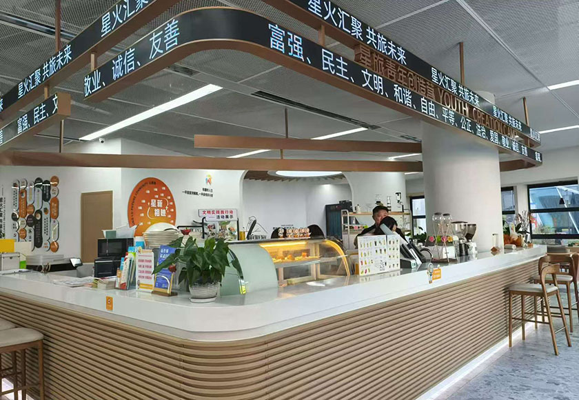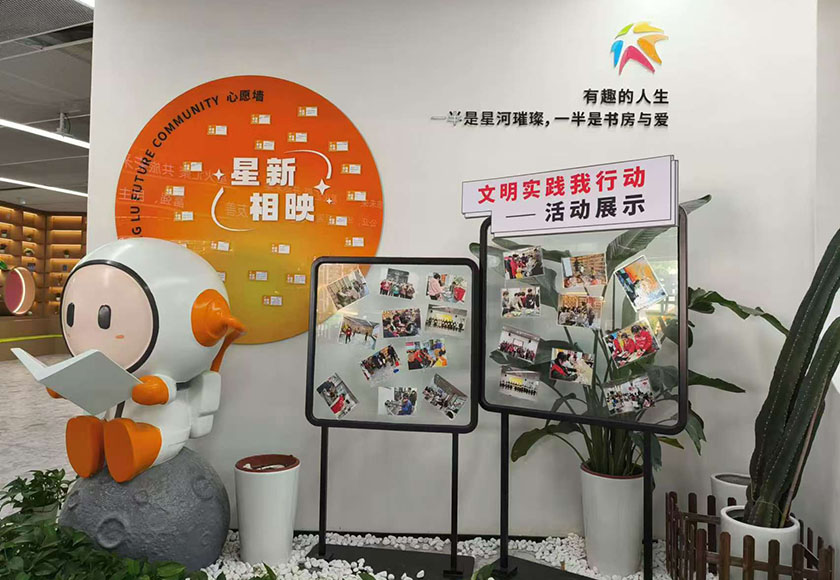 “未来书咖”是星旅青年创造营的一部分。据了解,整个创造营建筑面积近1000平方米,汇集了智慧运营中心、家门口青少年宫、24H城市书房、青年创客空间、自习卡座、胶囊健身馆等服务功能。