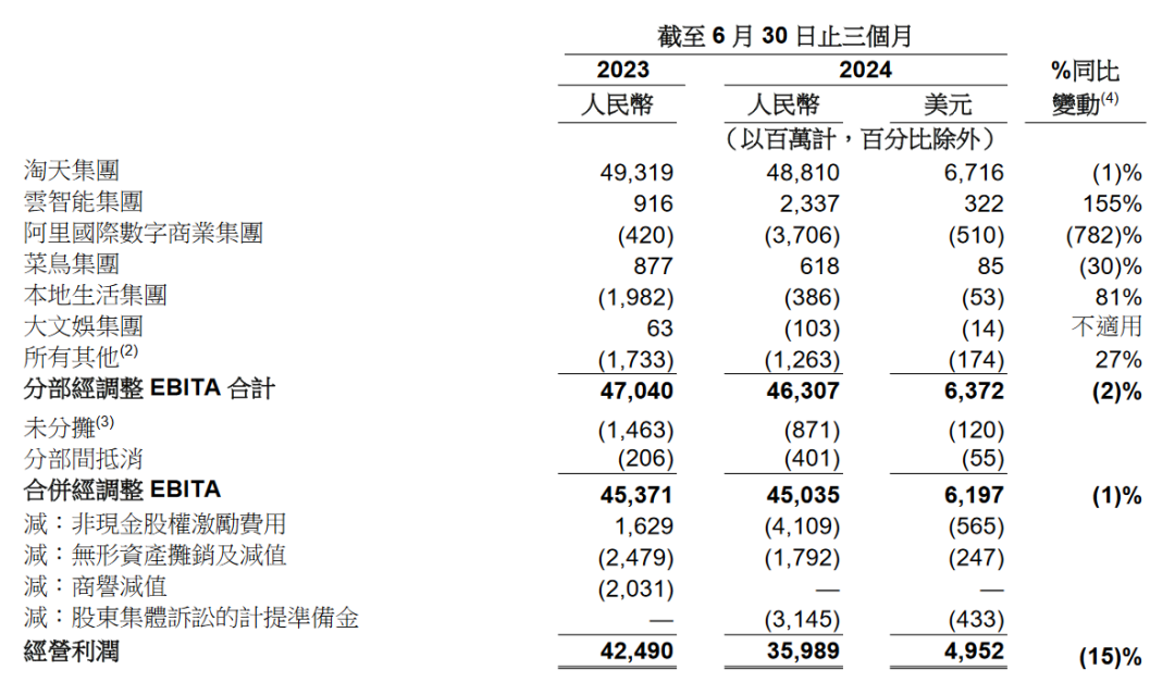 此外,本地生活的收入同比增长12%,主要来自饿了么与高德订单贡献;与此同时,减亏明显,经调整EBITA从去年同期的亏损19.8亿元收缩至亏损3.9亿元。