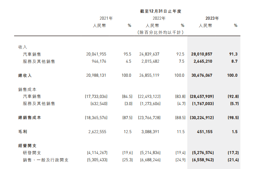 小鹏近年研发支出,来源小鹏汽车2023年报