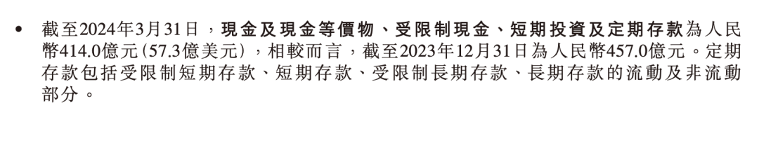 截至2024年3月底,小鹏汽车账上现金及现金等价物、受限制现金、短期投资及定期存款合计为414亿元,净资产为351.3亿元,其中净资产与2022年底的369亿元相差不大,现金则增加了30多亿元。
