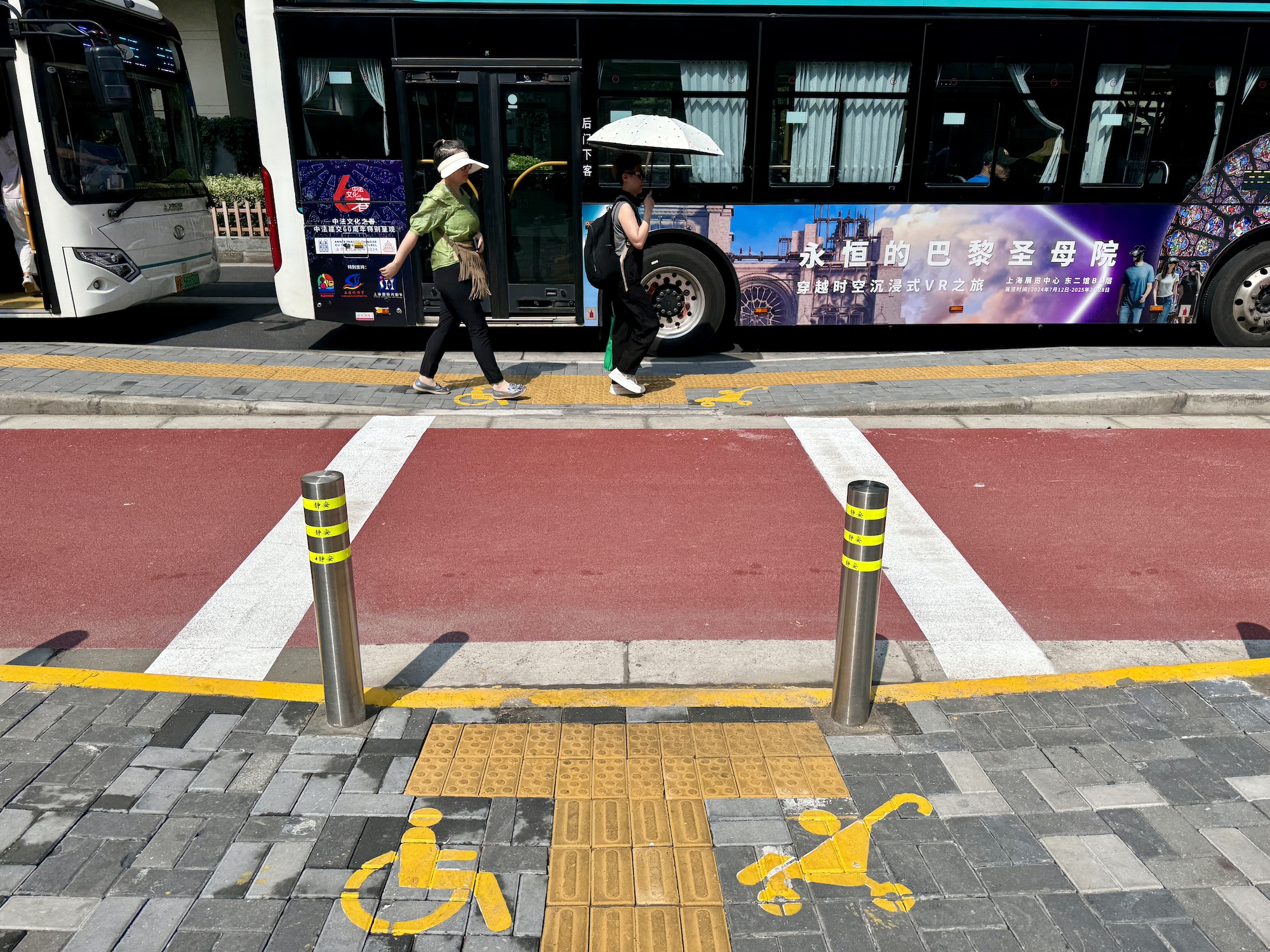 静安区交通管理中心副主任吴彬表示,为此,上海市区交通部门调整了公交专用车道外侧辅道宽度,将候车岛从1米拓宽至1.5米。同时,对站台适老化与无障碍设施进行同步升级改造,增设人行道与岛式站台的衔接坡道,设置无障碍与婴儿车标识。