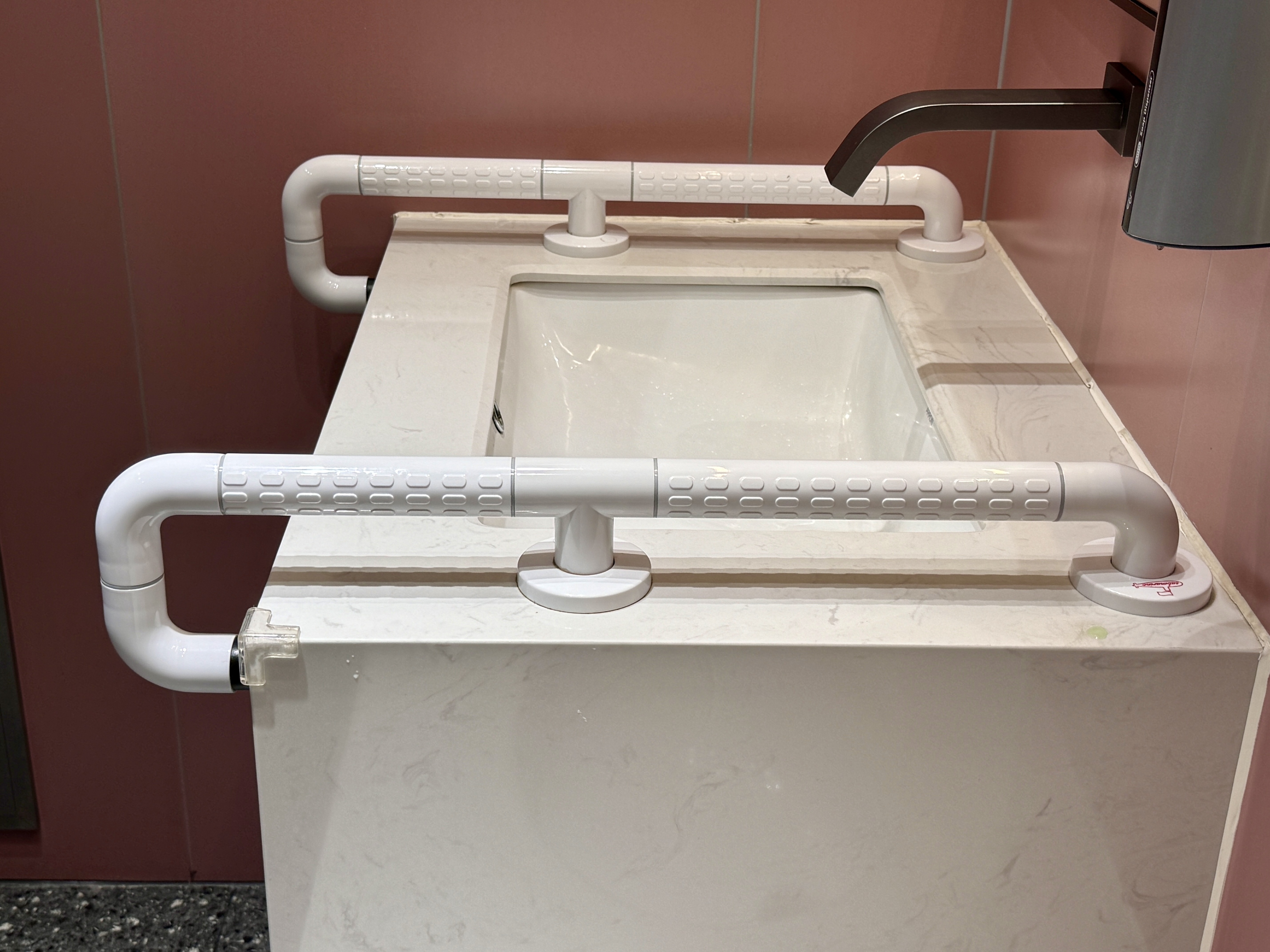 上海市市容环境质量监测中心公厕管理科科长宋刚表示,公厕地面采用了防滑水磨石地砖,顶光、墙面地面颜色对比都通过专门调试,不易引起老人眩晕,而马桶旁边倾斜45度、L形扶手,都高度契合老人抓握习惯。为了方便轮椅进出,公厕出入通道宽度均大于90厘米,这也高于行业通用标准。