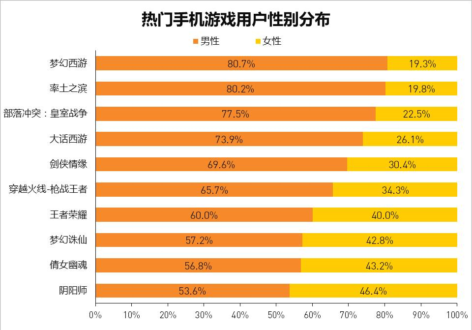 1.《梦幻西游》手游玩家:男性达80.7%,30岁以下玩家达80.7%
