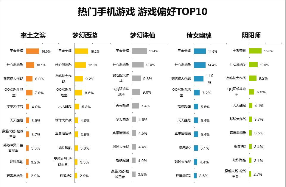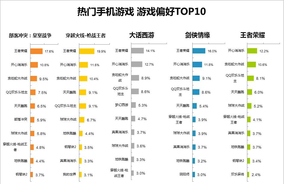 四、所有热门游戏的用户都最偏好《王者荣耀》,它已经无敌了