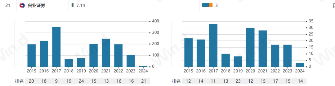 机构服务业务重点包括投行业务。据Wind数据显示,2023年,兴业证券股权承销金额104.94亿元,排在第16位;承销家数17家,排在第15位。但2024年以来,兴业证券股权承销金额仅7.14亿元,排在第21位;承销家数3家,排在第14位。