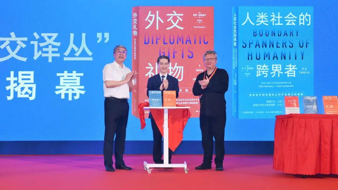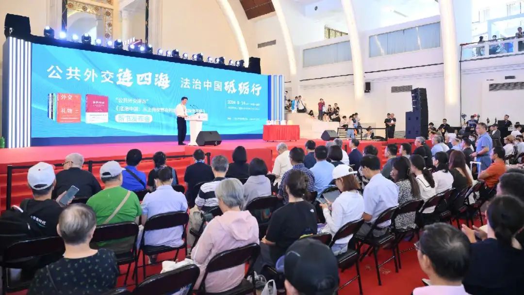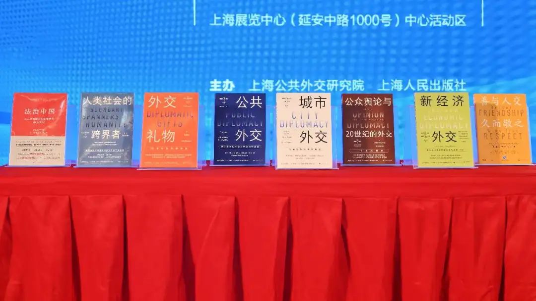 2024上海书展首日,上海公共外交研究院联合上海人民出版社,在上海展览中心中心活动区举办“公共外交连四海 法治中国砥砺行——‘公共外交译丛’、《法治中国:从上海世博会到进博会的探索实践》新书发布会”。由上海公共外交研究院策划的国内首套“公共外交译丛”的最新译著《人类社会的跨界者》《外交礼物:50件礼物中的历史》和全国政协常委、上海公共外交协会会长、上海公共外交研究院理事长周汉民主编的《法治中国:从上海世博会到进博会的探索实践》集体亮相。