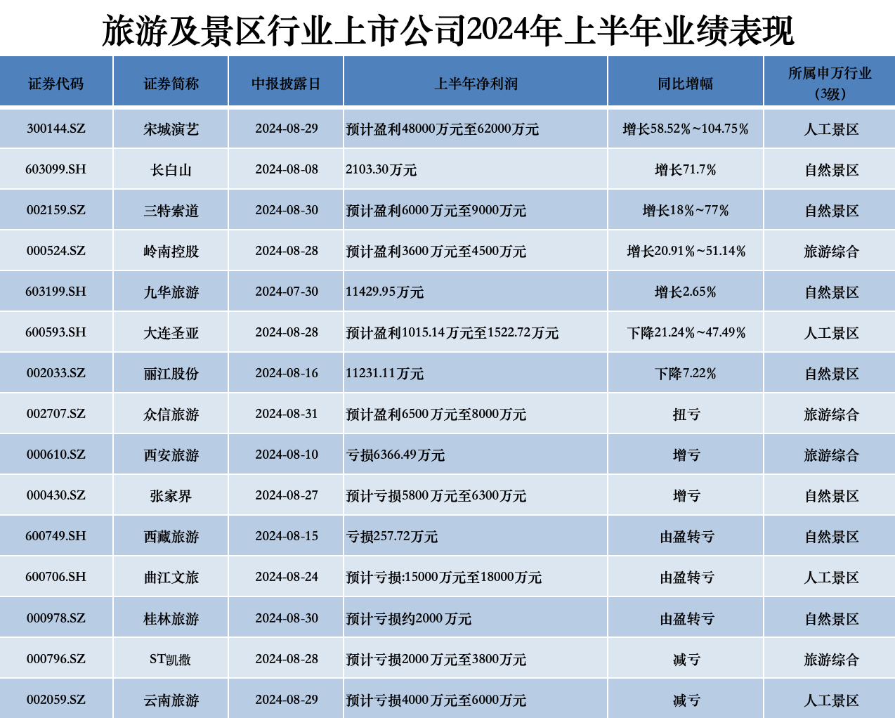 随着半年报陆续披露,旅游行业上市公司展现出一种冷暖交织的图景。截至目前,A股21家旅游及景区行业上市公司中,有15家发布了半年报或业绩预告,其中,5家公司业绩增长,1家扭亏,2家业绩下滑,还有7家处于亏损中。
