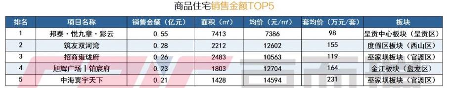 从“双榜”看,邦泰·悦九章加推后持续备案,以销售0.55亿元,成交56套房源的成绩,双双居首,成交均价为7386元/㎡。筑友双河湾、招商雍珑府2个项目次之,占据榜单前三,成交均价分别为12602元/㎡、10563元/㎡。