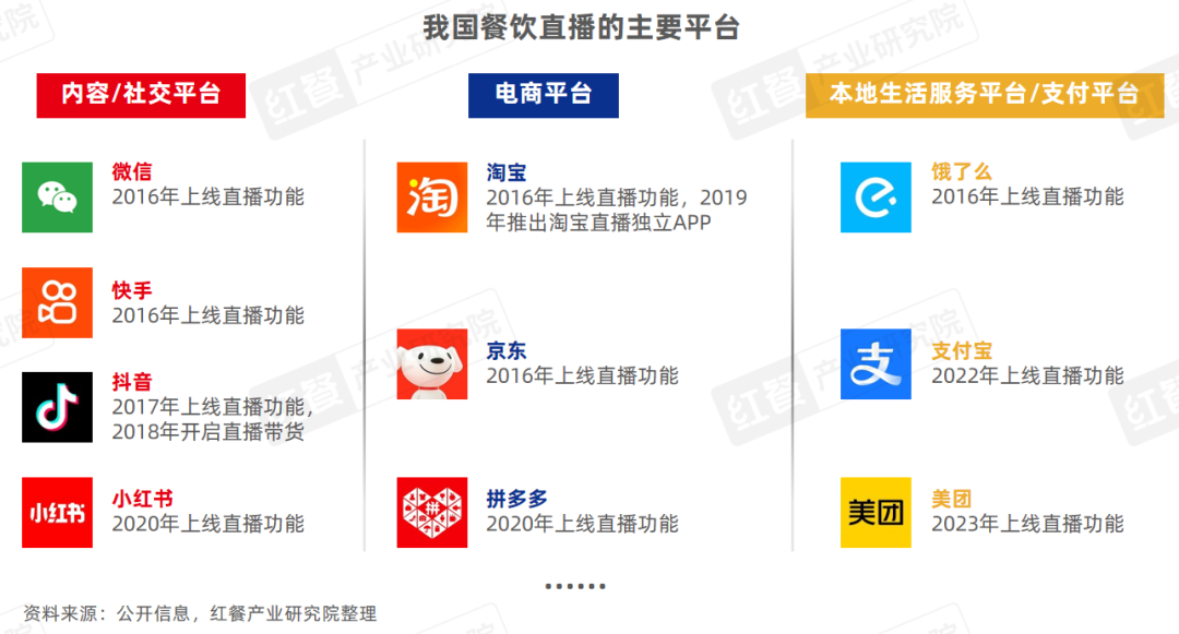 纵观这些平台上线直播功能的时间,大致可追溯至2016年。彼时电商直播兴起不久,平台看中直播的潜力,为商家提供直播的沃土。经过几年时间的发展,小红书、支付宝、美团等平台也跨界涉猎餐饮电商直播的业务。