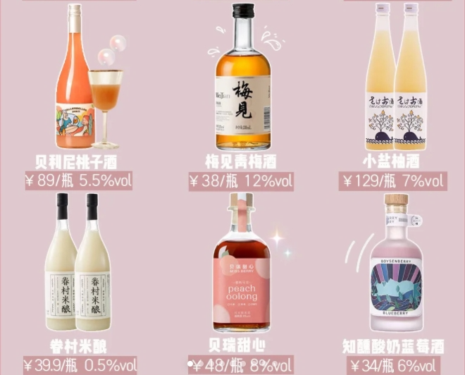 据“趣解商业”梳理,不少新老玩家纷纷入局此赛道。茅台推出了“悠蜜”系列蓝莓气泡酒,五粮液瞄准青梅酒市场研发了仙林青梅酒,古井贡酒则推出了主打健康的佰色果酒等等;贝瑞甜心、狮子歌歌、江湖乖乖等一众互联网新锐品牌也纷至沓来;此外,包括盒马、海底捞、叮咚等在内的零售和餐饮连锁品牌也跨界入局,在各自渠道端推出自主品牌的新酒饮产品。