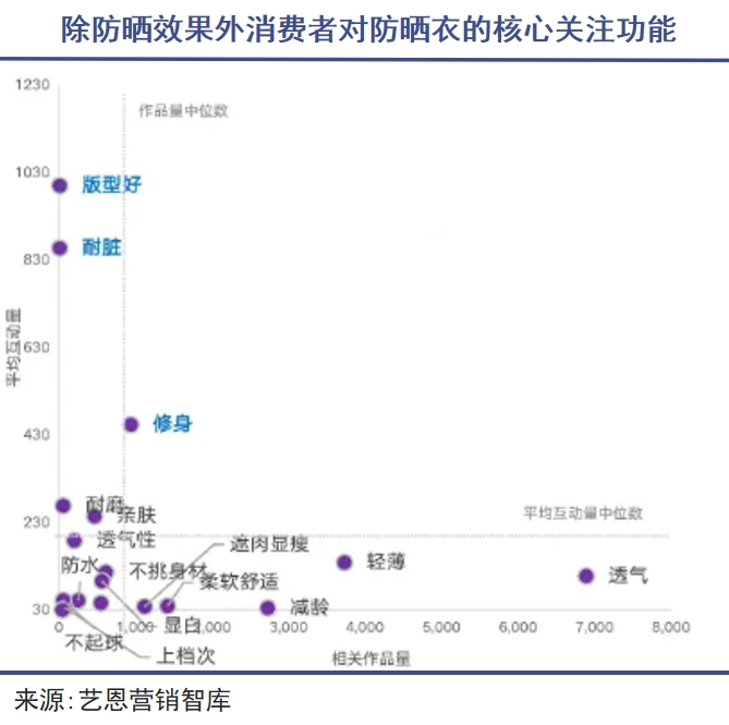 想让消费者为溢价买单,品牌就需要提高自己的黑科技含量,在防晒衣的数值和工艺方面下功夫。