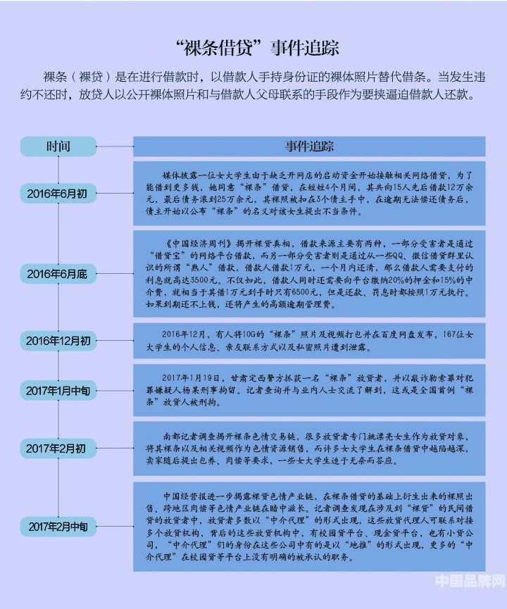 以借贷宝为例,这是一家由国内顶级私募机构九鼎控股打造的从事熟人借贷的P2P网贷平台,并不在被重点打击和清理的非法P2P网贷平台之列,然而正是这样一家合法经营的网贷平台曝出了令人震惊的“裸条放贷”事件,数量达到“10G”的裸条很难说只是局部现象,大面积的违规放贷出现在大学校园中,甚至是高利贷,最后还被媒体曝出违规放贷者安排女大学生“肉偿”。虽然此后借贷宝公司组织“深蓝护卫队”打击借贷过程中违规行为,但大面积的违规放贷行为,已经严重危害了网络借贷行业的形象和校园贷生态。