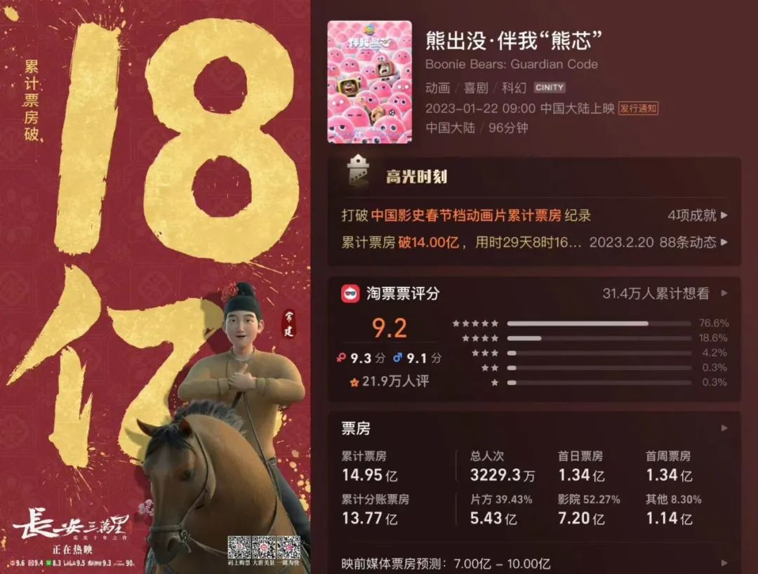 尽管刷新系列新高,但与去年《长安三万里》的佳绩相比,还是有些不够看了。