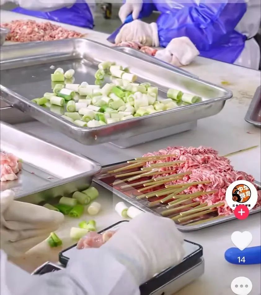 除了这些常规产品,贝三少还把一些蔬菜和肉串结合到一起,或是通过不同的色彩搭配来创新产品的出品形式,推出了紫苏鸡皮虾、培根芝士年糕、猪五花泡菜卷、四色香肠等串烧产品。据其抖音账号,目前,贝三少共有80余款烧鸟半成品产品。