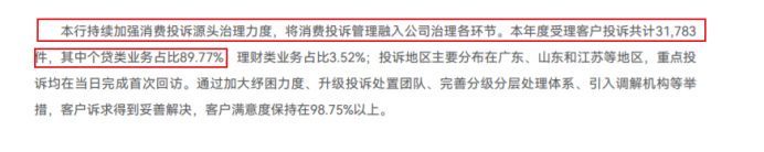 从百信银行2023年报看,该行全年受理客户投诉量共3.18万件,其中人贷类业务占比89.77%。