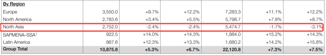 根据欧莱雅财报,北亚地区早在今年第一季度就已经陷入负增长,销售额同比下降1.1%,而第二季度降幅进一步扩大至2.4%。