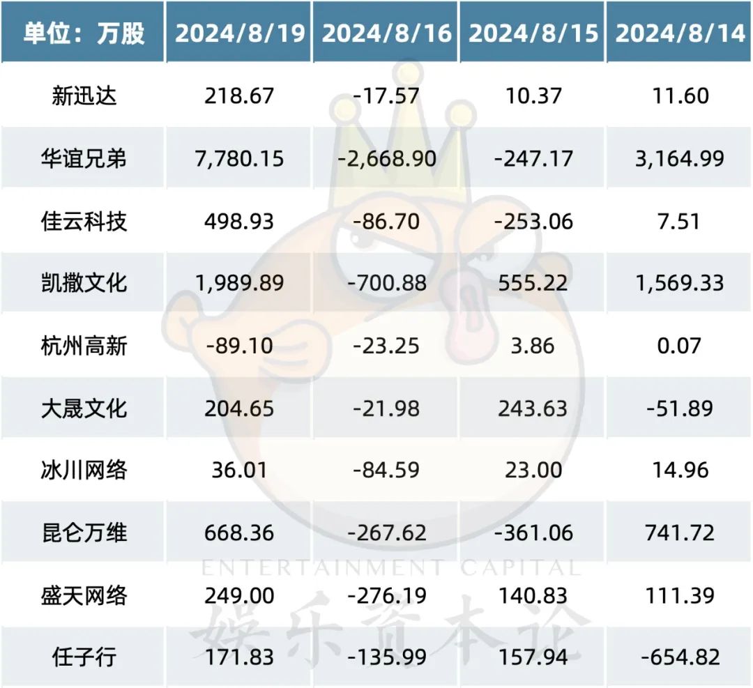 华谊兄弟:机构功成身退,游资空中加油。先从四只股票中唯一与《黑神话》存在关联的华谊兄弟看起。7月25日起,华谊兄弟持续上涨,至今涨幅超75%。8月19日,华谊兄弟今年首次进入龙虎榜;机构席位净卖出960.22万元,而买入金额前五名均为游资,且其中亦不乏知名游资的参与。从股东构成来看,从去年第三季度开始,华谊兄弟的机构持股占比有所增长。