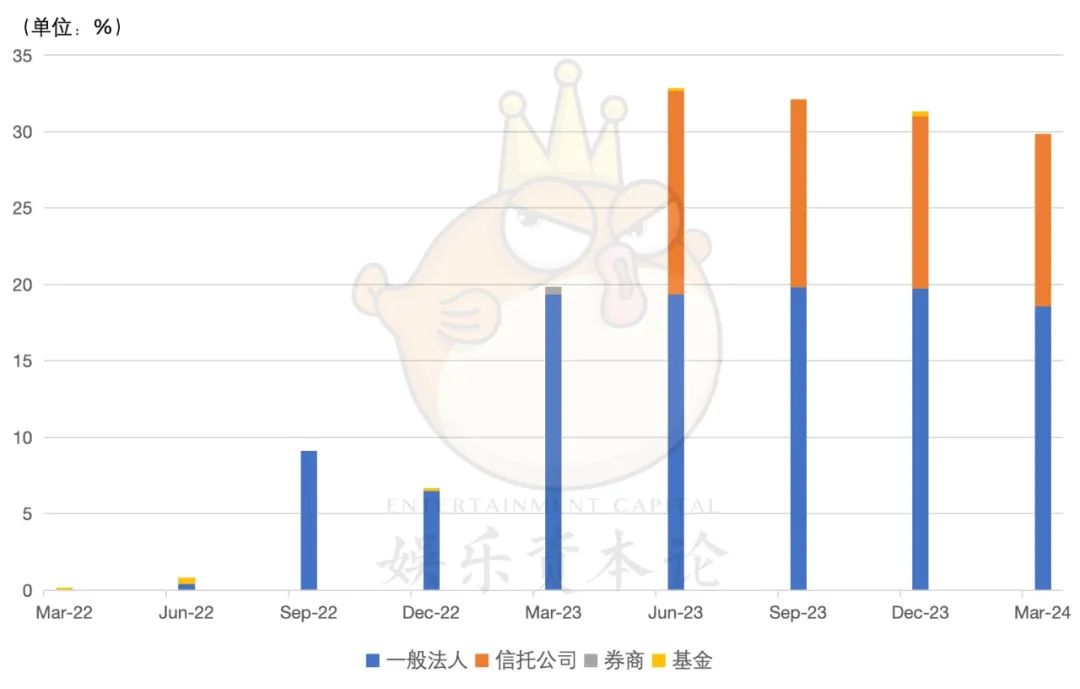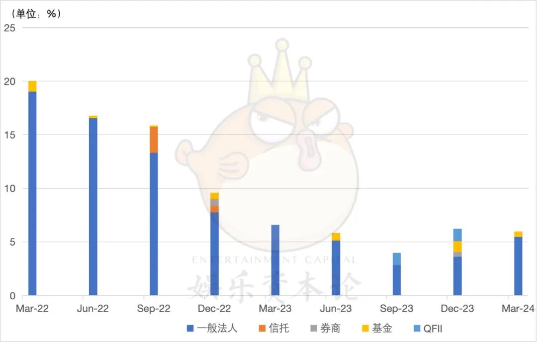 游资爆炒新迅达。新迅达可以算得上此轮上涨中最为吸睛的股票之一,连续两日的涨幅都达到20%涨停。然而,需要注意的是,新迅达和《黑神话:悟空》,乃至于和整个游戏行业的联系,都是极其微弱的。作为一家主营业务是互联网电商的公司,游戏业务在新迅达2023年营收中占比不超过1%。而结合其披露的机构投资者持股情况来看,一般法人持股保持稳定,信托持股连连下降。因此,不难看出非常明显的游资操作痕迹。