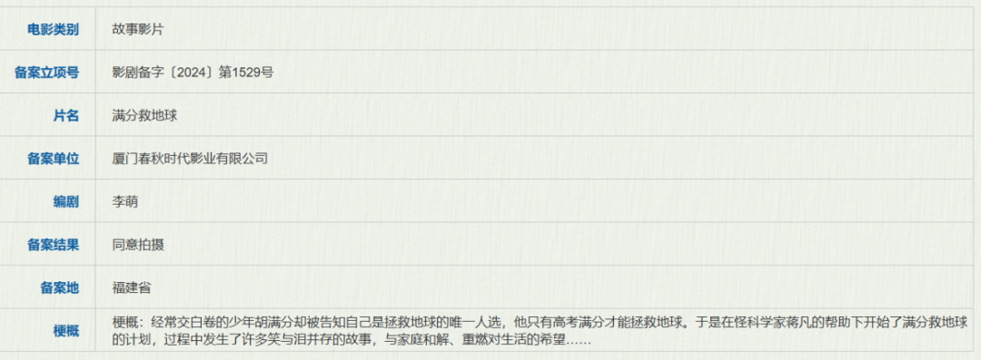 继参与了春节档卖座喜剧片《第二十条》的编剧工作后,李萌很快开始着手下一部喜剧作品——《满分救地球》。《独行月球》《疯狂的外星人》等前作的成功已然证明了科幻喜剧是近年来构成喜剧片的重要分支。从简介上看,《满分救地球》的视角更加年轻化,预计将吸引更多青少年观众。