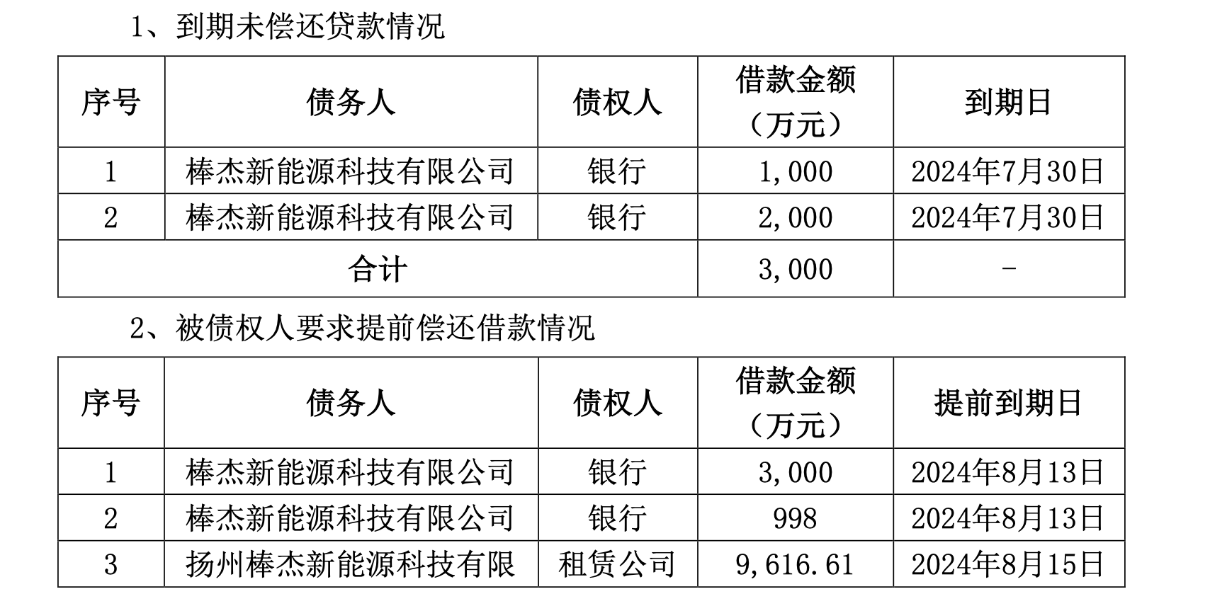 8月20日晚,棒杰股份(002634.SZ)公告称,受外部经营环境承压的影响,光伏板块子公司部分借款被要求提前偿还,从而造成暂时流动性资金的紧张,致使光伏板块部分子公司出现未能按时履行部分债务偿还义务的情况。