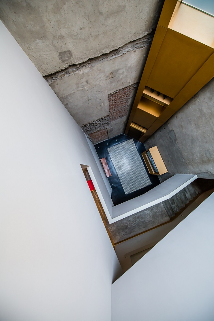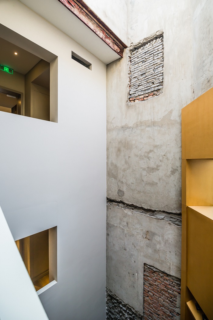 天井出多出来的空间增加了采光,水泥墙上的纹路和砖块依稀可见,自成一景。