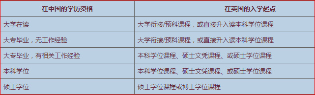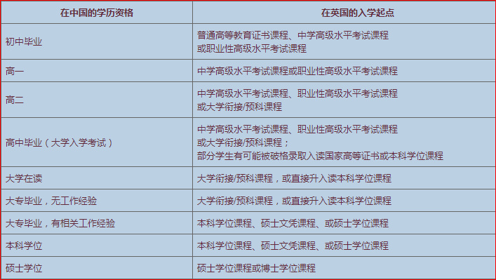 中英学生高等教育资格对比表