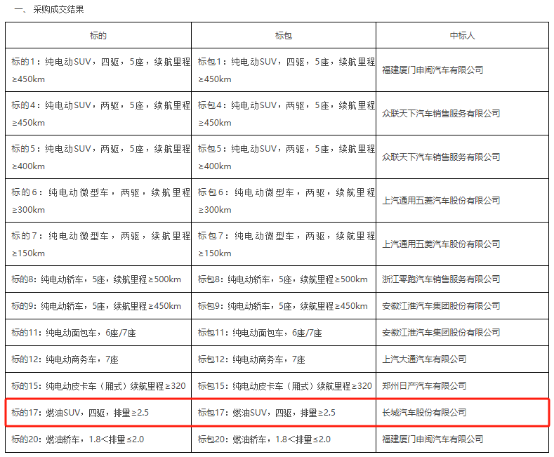 然而,双方最近的一次合作发生在2022年11月22日,彼时长城汽车中标南方电网电动汽车服务有限公司2022-2024年度通用车辆(第一批)框架采购。在此次招标中,南方电网采购了长城汽车旗下的燃油SUV四驱车型。