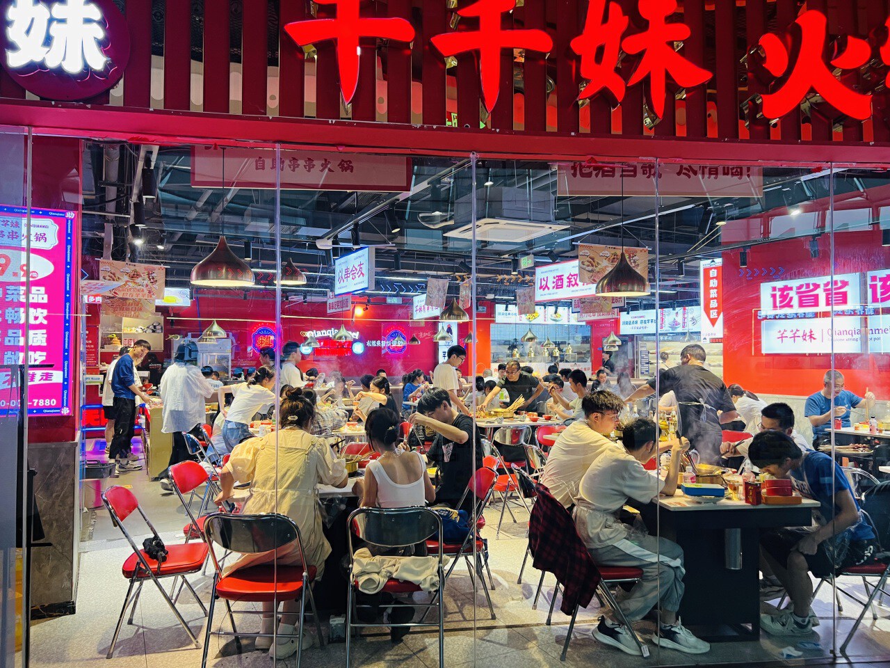 新城吾悦广场桃花里步行街的夜市,在夜幕之下绽放出别样的光彩。这条1500余米长的商业街上,火锅、串串、烧烤、奶茶等各路美食云集,休闲娱乐消费体验项目扎堆入驻。今年以来,桃花里步行街日均客流量超过3万人次。