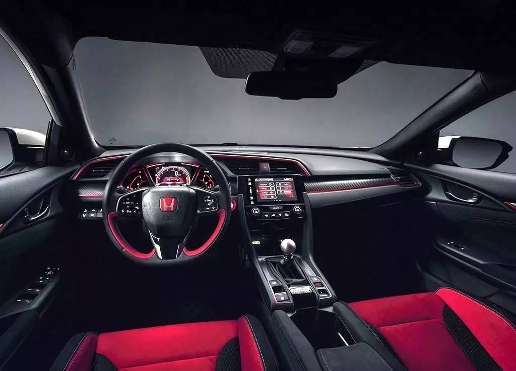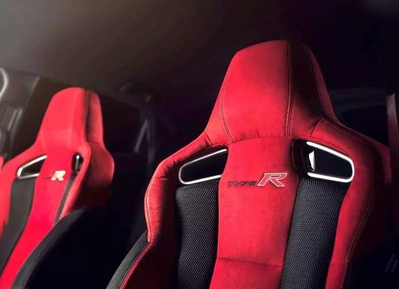 在外观上如此运动化的新思域TYPE-R,本田也将其同步到内饰上。赛车化的座椅由德国RECARO品牌代工,采用红黑双色的配色,材质由Alcantara与织物拼接而成。座椅靠背上方绣有TYPE R的专属LOGO,座椅两侧孔位提供车主自行扩展安装四/五/六点式赛车安全带的便利性,并且原厂的三点式安全带也由红色材料编织而成。