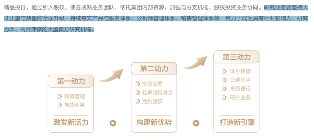 据方正证券2022年年报显示,2023年,研究业务被定位为方正证券要打造的发展新引擎之一。公司管理层指出,“要坚持人才质量与数量的全面升级,持续夯实产品与服务体系、分析师管理体系、销售管理体系等”。方正证券研究所计划用三年时间,恢复为与方正证券市场地位相匹配的大型卖方研究所。