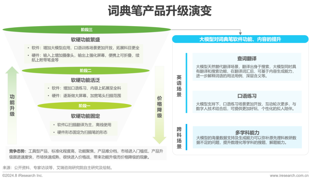 软硬功能由固定走向繁盛,大模型显著提升翻译、口语练习及跨科能力