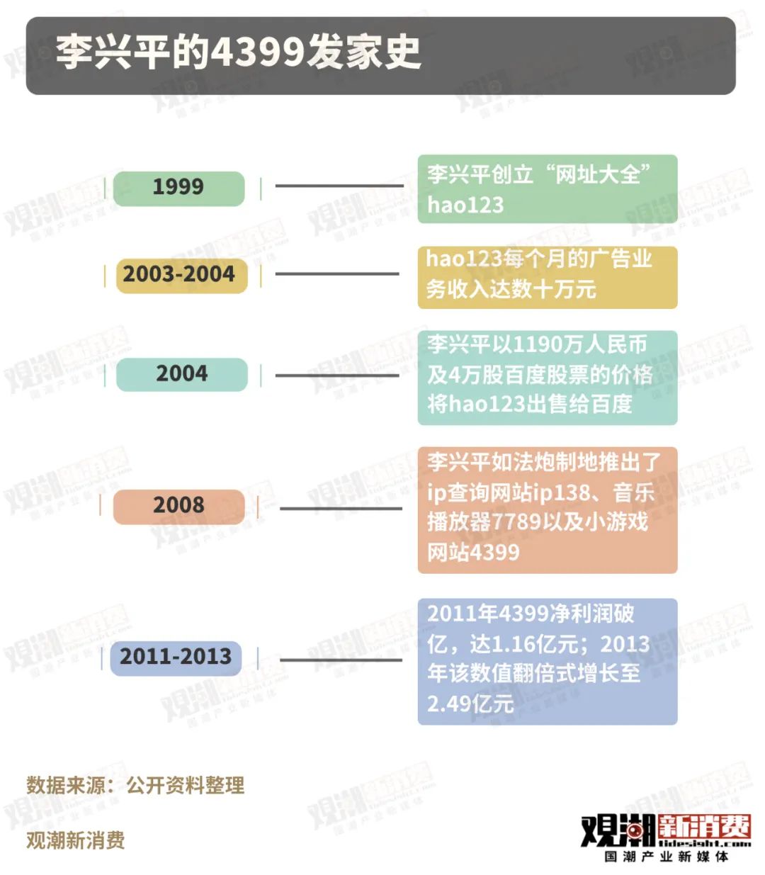 卖出hao123后,李兴平利用此前做网站的经验,如法炮制地推出了IP查询网站ip138、音乐播放器7789等多种集合性网站,这其中就包括小游戏网站4399。