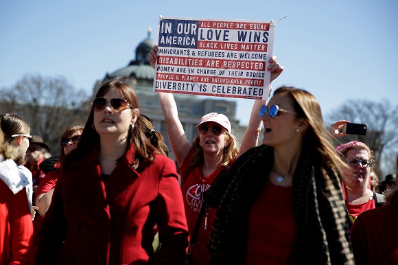 美国一些女性把3月8日国际妇女节过成了“没有妇女日”(Day Without a Woman),许多人在这一天选择不上班、不购物,而是参加各种集会,以期展示女性的经济影响力,唤起人们对妇女权益的重视。