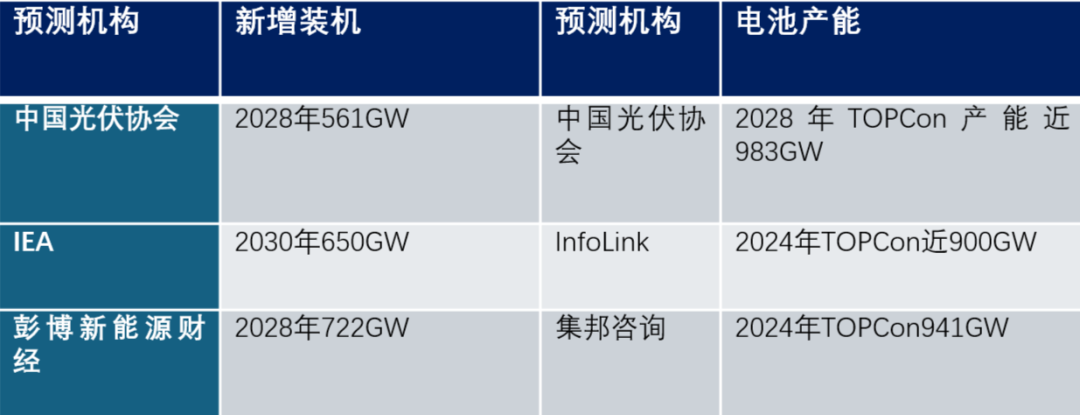 中国光伏协会预测:2028年电池环节产能为1379-1444GW,其中TOPCon产能将达到983GW。