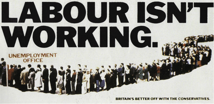 一则广告竟能扭转英国政坛走向,实在让人难以置信。在这张标志性的海报中,领取救济金的失业者在失业办公室前排起了蜿蜒队列,“工党真无用”这句话在当时看来一点也不夸张。